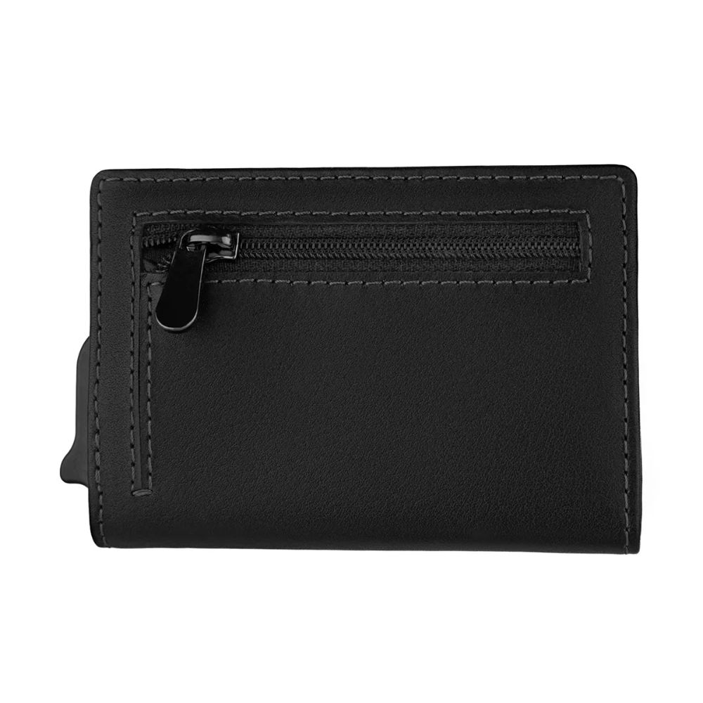 Carteira pequena em pele e alumínio.