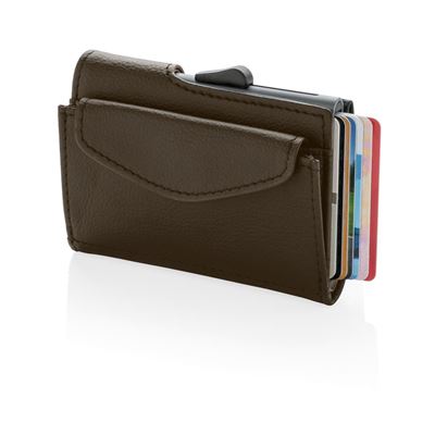 O mecanismo patenteado da nossa carteira/porta-cartões oferece um método simples e fácil de acessar seus cartões.