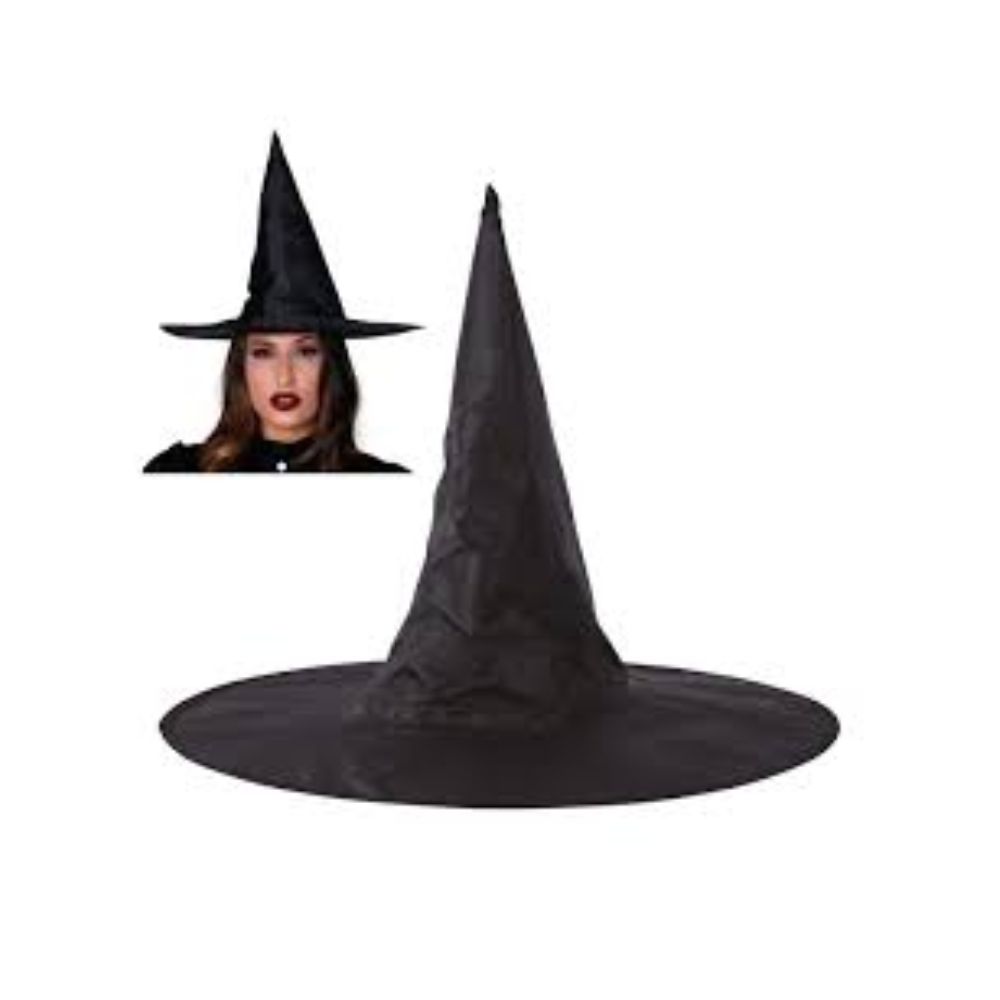 Um chapéu de bruxa preto completa a sua fantasia de bruxa e faz a alma da festa. Este chapéu preto espetacular é perfeito para o Halloween e festas temáticas, adicionando um toque mágico ao seu visual.