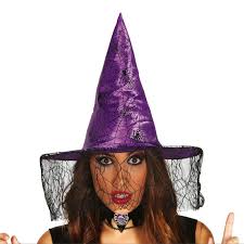 Chapéu de Bruxa Lilás com renda em preto