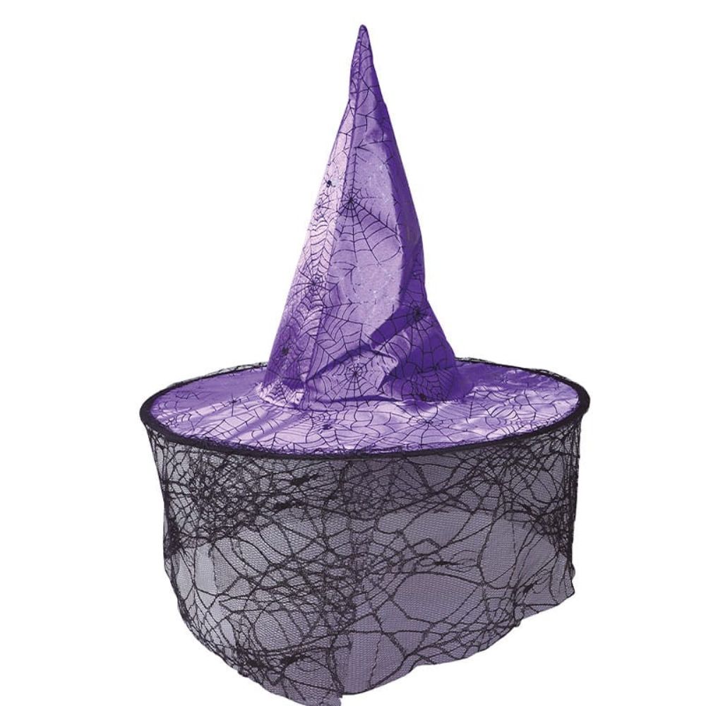 Chapéu de Bruxa Lilás com Renda em Preto