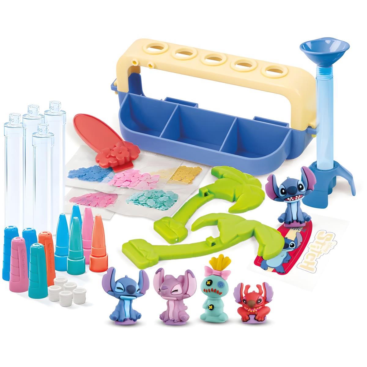 O novo Pen Studio ao estilo Stitch! A maneira perfeita de criar canetas fabulosas com o tema Stitch. Um suporte prático e um conjunto completo de instrumentos para personalizar canetas com muitas decorações e personagens simpáticos do Stitch. O conjunto contém 5 canetas com os personagens, bem como tintas coloridas, decorações iridescentes, contas e autocolantes para personalizar o suporte. Um conjunto de artesanato que dá asas à imaginação das crianças.