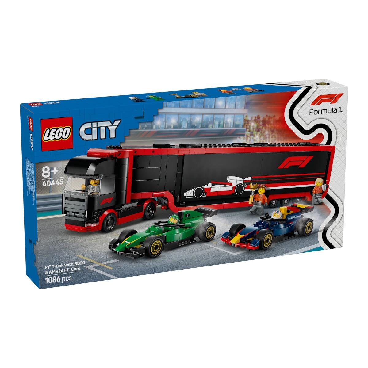 Apresentamos-lhe o colossal LEGO® City Camião de F1® com Carros de F1® RB20 e AMR24. Este camião de transporte inclui um reboque rebaixado com sala de simulação de F1 e duplo compartimento para veículos que abre totalmente dos lados. As crianças levantam a escotilha e usam as rampas para carregar os incríveis RB20 e AMR24. O set também inclui 2 minifiguras de pilotos e 3 da equipa das boxes, além de um troféu para histórias épicas. Este set LEGO com veículo de F1 inclui um guia de construção passo a passo impresso e instruções digitais na app LEGO Builder. Aqui, as crianças podem ampliar e rodar modelos em 3D, acompanhar o progresso e explorar e guardar outros sets. Idade: +8 Anos O produto comercializado tem a marcação CE. Não funciona com pilhas e/ou baterias Contém peças pequenas não recomendado a crianças menores de 3 anos Não adequado a crianças menores de 3 anos. AVISO: Contém peças pequenas. Perigo de asfixia.