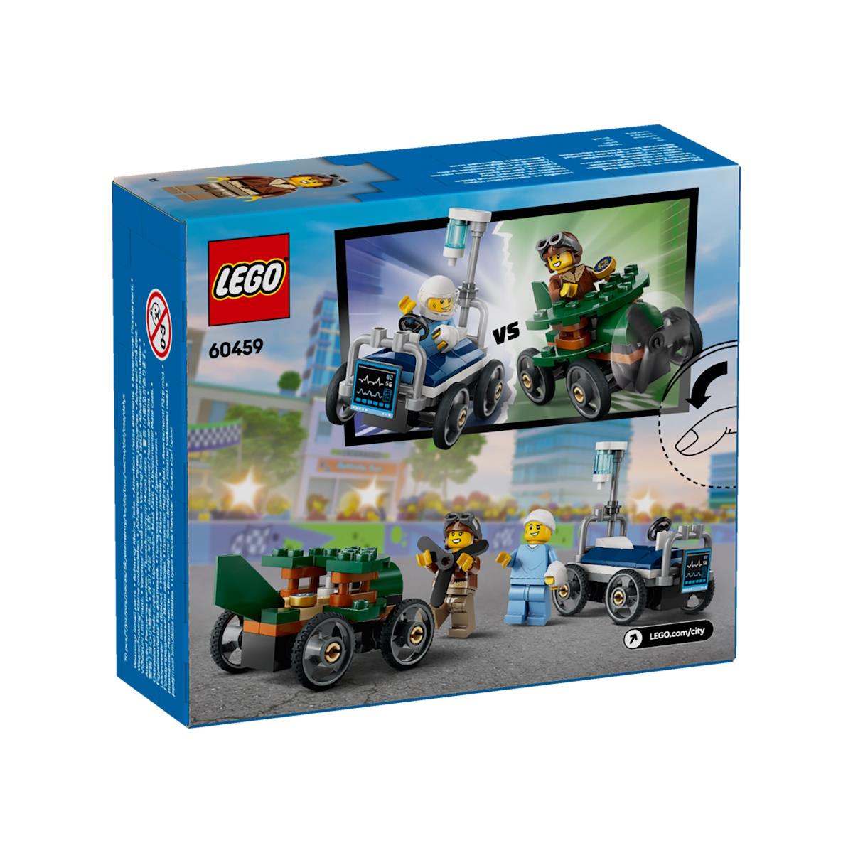 Faz as delícias dos pequenos fãs de corridas com o LEGO® City Pack de Carros de Corrida Aeronave vs. Cama de Hospital. Este brinquedo divertido inclui 2 carros de corrida soapbox e 2 minifiguras. As crianças colocam frente a frente o piloto do avião contra o paciente na surpreendentemente rápida cama de hospital. Quem vai ganhar? Assiste a esta corrida urbana épica! Este set LEGO City com carros soapbox inclui um guia de construção passo a passo impresso. As crianças também vão desfrutar de aventuras divertidas com a app LEGO Builder, onde podem ampliar e rodar modelos em 3D, acompanhar o progresso da construção e explorar e guardar outros sets. Os sets LEGO City incluem veículos incríveis, estruturas realistas e personagens divertidas que inspiram brincadeiras criativas sem limites.