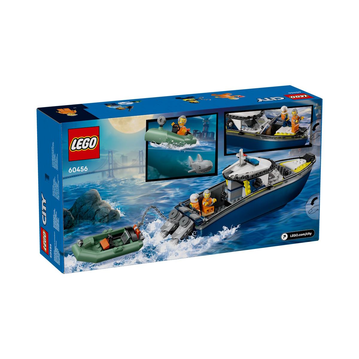 Os pequenos heróis do dia a dia vão adorar o LEGO® City Perseguição com Barco da Polícia (60456). Ideal para construtores 6+, este set inclui um barco da polícia, com motor duplo na popa e cela no interior, e um bote veloz do vigarista. As crianças podem fazer flutuar ambos os barcos na água e participar em perseguições emocionantes com os 2 agentes da polícia, criminoso, tubarão e rubi roubado!