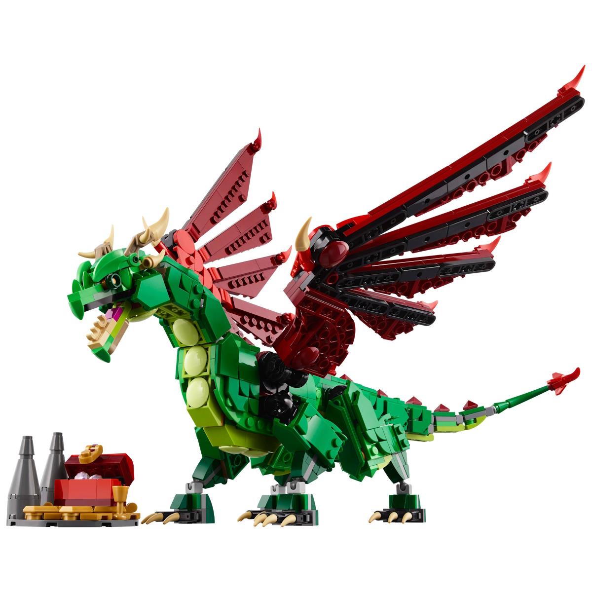 Encante seu pequeno viajante do tempo com este conjunto LEGO® Creator Dragão Medieval (31161). Com uma figura de dragão que permite que meninos e meninas maiores de 9 anos vivam emoções medievais, ele conta com um par de asas articuláveis grandes que sobem e descem e dobram para dentro e para fora, além de tornozelos, dedos, pescoço, mandíbula, quadris e ombros articuláveis. Ele também inclui um baú de tesouro para ainda mais diversão. Fãs de animais míticos podem construir três conjuntos diferentes com as mesmas peças: uma figura de dragão articulável, uma serpente marinha ou uma fênix articulável. Todas as três criaturas míticas neste conjunto mutável são ótimos presentes de aniversário para crianças. Os conjuntos LEGO Creator 3em1 inspiram a imaginação das crianças com três modelos diferentes para construir em cada caixa, para construir, reconstruir e construir novamente. Os conjuntos 3em1 oferecem uma linha de modelos que apelam às maiores paixões das crianças, incluindo veículos supervelozes, animais incríveis e casas detalhadas. Tenha em mente que os modelos não podem ser construídos simultaneamente. Idade: +9 Anos Dimensões aproximadas do produto (cm) LxAxC: 26,2 x 5,65 x 38,2 O produto comercializado tem a marcação CE. Não funciona com pilhas e/ou baterias Contém peças pequenas não recomendado a crianças menores de 3 anos Não adequado a crianças menores de 3 anos. AVISO: Contém peças pequenas. Perigo de asfixia.