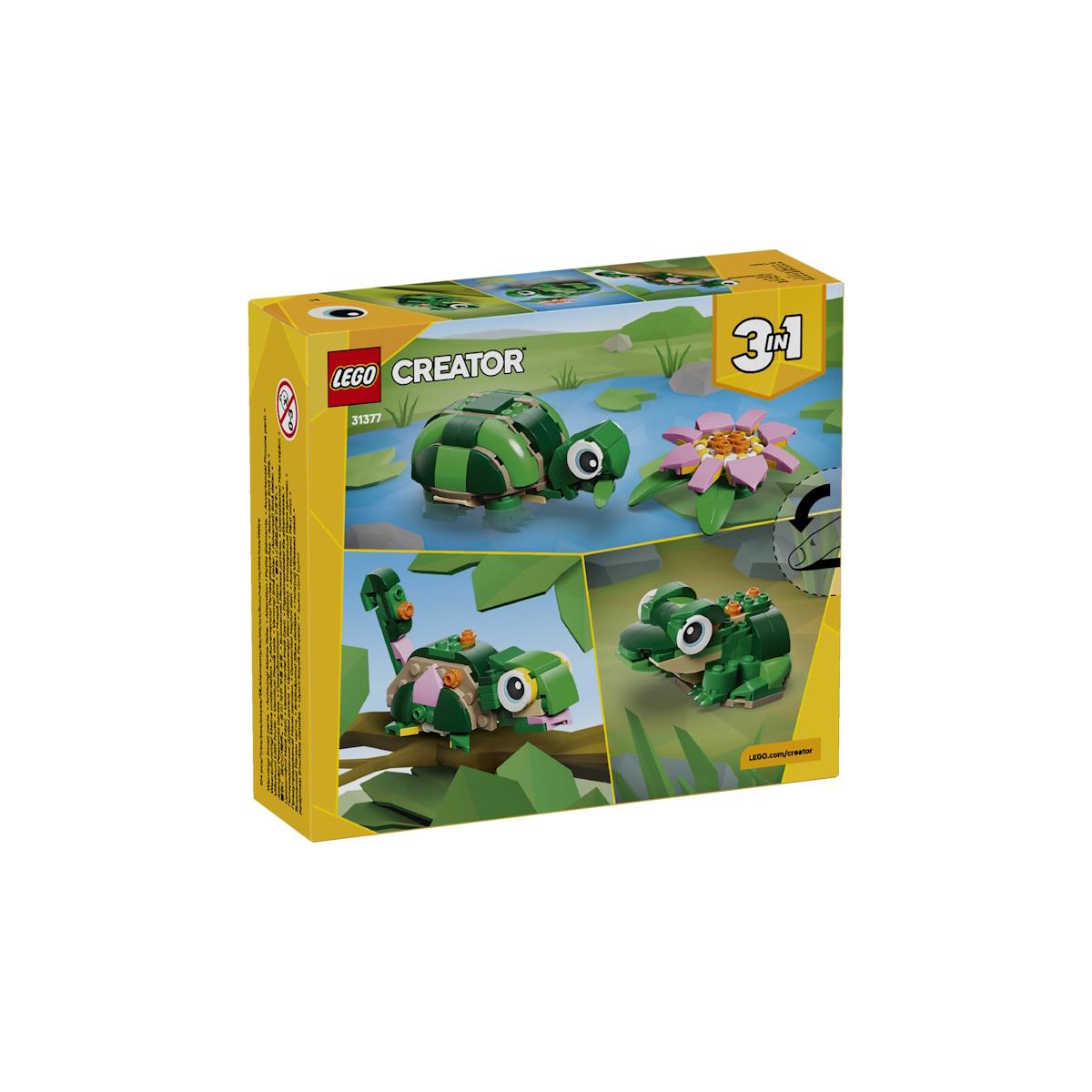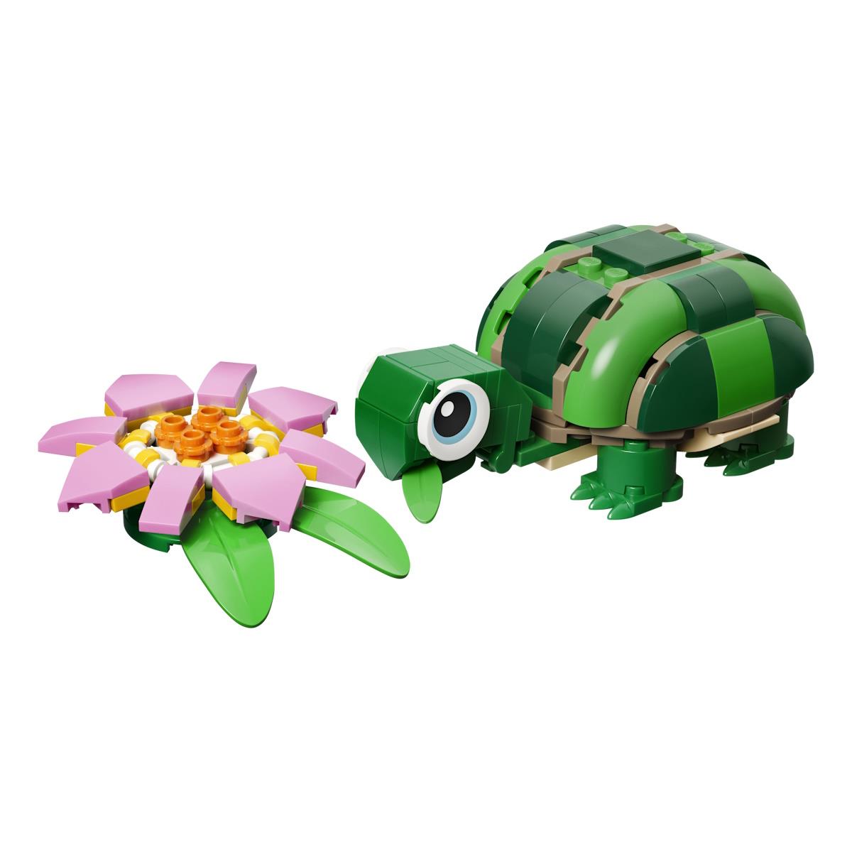 Cria histórias encantadoras com o LEGO® Creator 3 em 1 Tartaruga com Nenúfar, um conjunto de 124 peças recomendado para crianças a partir dos 7 anos que oferece três opções de construção com as mesmas peças. As crianças podem construir uma tartaruga ajustável com um nenúfar rosa, um camaleão com cabeça e cauda móveis ou um sapo com boca articulada. Com modelos ideais para brincar ou expor, este set estimula a criatividade e o gosto pelos animais. As instruções digitais na app LEGO® Builder proporcionam uma experiência de construção interativa em 3D. Ideal para fãs de animais e sets LEGO Creator 3 em 1.