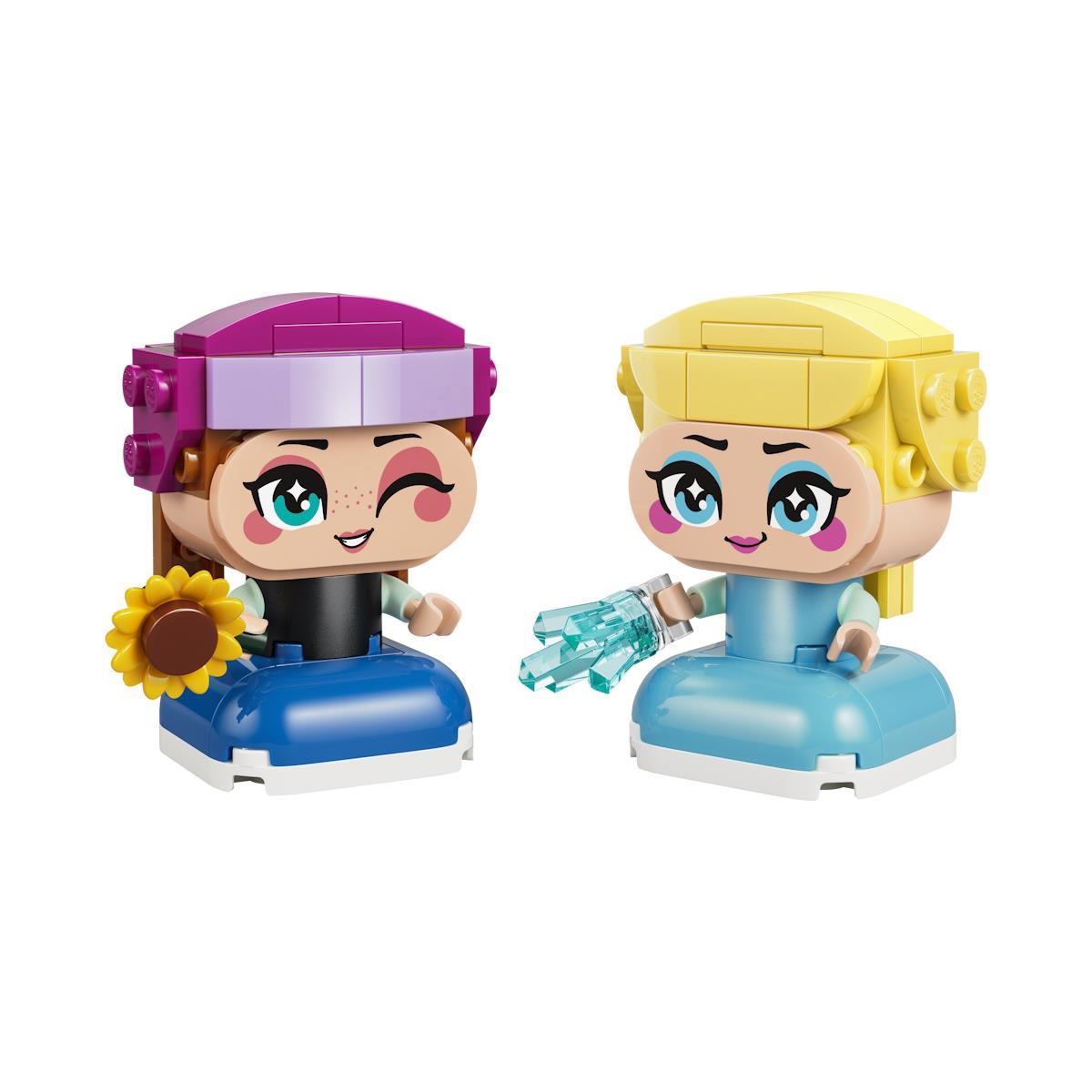 Cria histórias mágicas com o LEGO® | Disney Frozen Mini Anna e Elsa, um conjunto de 65 peças recomendado para crianças a partir dos 5 anos que incentiva a imaginação e o faz de conta. As mini personagens Anna e Elsa têm braços móveis para segurar acessórios como raios de gelo e girassol, ideais para criar aventuras inspiradas em Frozen. Perfeitas para brincar ou expor, estas figuras fazem parte de uma série colecionável Disney Princess. As instruções digitais na app LEGO® Builder oferecem uma experiência de construção simples e intuitiva em 3D. Ideal para fãs de Disney Frozen e histórias de princesas.