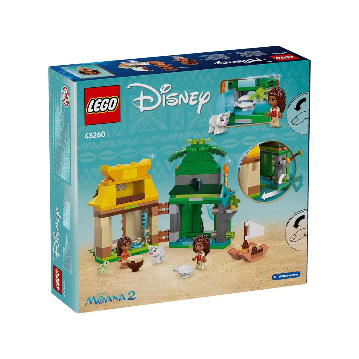 Os fãs da Vaiana da Disney vão desfrutar de aventuras fantásticas com este kit de construção LEGO® Disney Diversão na Ilha da Vaiana. Com um modelo de face dupla inspirado no filme Disney Vaiana 2, este set com micromundo é um set pequeno com um mundo gigante no interior. A ilha tem um escorrega na cascata com uma entrada oculta, e a casa tem quartos para as figuras de microbonecas LEGO Disney da Vaiana, da sua irmã mais nova Simea e espaço para o Pua. Inclui um pequeno barco e iniciadores de histórias emocionantes. Além disso, a ilha pode ser fechada à chave, tornando-se no brinquedo perfeito para levar para todo o lado. Este set da Disney divertido e de alta qualidade está repleto de funcionalidades que vão inspirar as crianças enquanto estas encenam as cenas favoritas do filme ou criam novas histórias. Além disso, as crianças vão desfrutar de uma aventura de construção fácil e intuitiva com a app LEGO Builder, onde podem ampliar e rodar modelos em 3D, guardar sets e acompanhar o progresso.