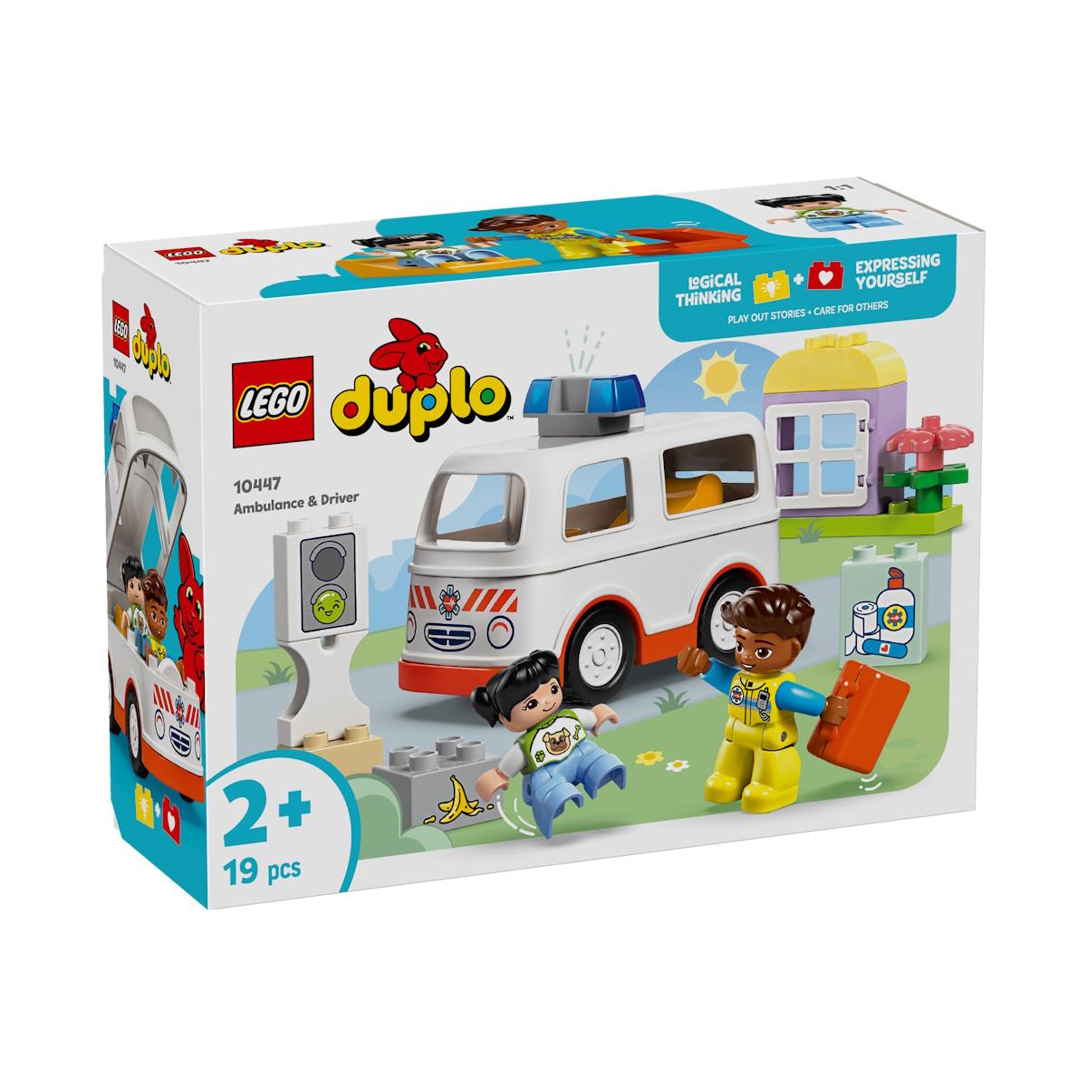 Crianças atenciosas brincam de cenas de resgate com o brinquedo Ambulância e Motorista (10447) para crianças pré-escolares. Este brinquedo para pequenos inclui uma ambulância de brinquedo pilotável e 2 figuras LEGO® DUPLO®, um paramédico e uma menina, para brincadeiras criativas e imaginativas. Um ótimo presente para crianças que gostam de atividades de aprendizagem social e emocional, este brinquedo LEGO DUPLO é feito para ajudar os pequenos a aprender empatia. As instruções de construção contém uma roda de brincadeiras impressa que permite aos pais e pré-escolares explorarem as diferentes emoções da menina. Crianças pré-escolares podem utilizá-la para expressar seus sentimentos quando não estão bem ou para falar como se sentiam ao ver uma ambulância pela primeira vez. Elas também podem desenvolver o pensamento lógico pensando em como construir uma sequência de eventos e a coordenação motora fina ao abrir o teto da ambulância e colocar a figura da menina na cama reclinada. Este brinquedo educativo para crianças pequenas ajuda os pré-escolares a desenvolver habilidades sociais explorando como o motorista da ambulância cuidaria da paciente. Idade: +2 Anos Dimensões aproximadas do produto (cm) LxAxC: 19,1 x 9,1 x 26,2 O produto comercializado tem a marcação CE.