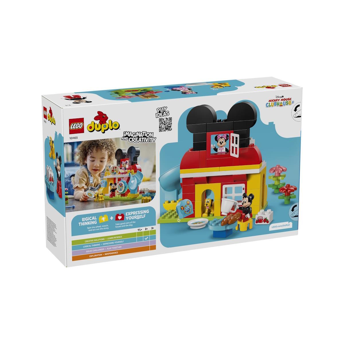 Entra na diversão com o set LEGO® DUPLO® A Casa do Mickey Mouse com a Minnie e o Pluto, recomendado para crianças a partir dos 2 anos e composto por 87 peças que permitem construir uma casa de dois pisos com escorrega, sala de arte, jardim com hotel de insetos, mesas, cadeiras e porta especial para o Pluto. O conjunto inclui as figuras LEGO | Disney do Mickey Mouse, Minnie Mouse e Pluto, além de uma peça decorativa do computador Toodles, proporcionando diversas atividades imaginativas, como alimentar o Pluto, pintar, brincar no escorrega, cultivar morangos e fazer compota. Este brinquedo educativo incentiva a motricidade fina, promove o cuidado com os outros e oferece horas de brincadeiras criativas, permitindo que os pequenos construtores explorem e encenem cenas divertidas com os seus personagens Disney favoritos.