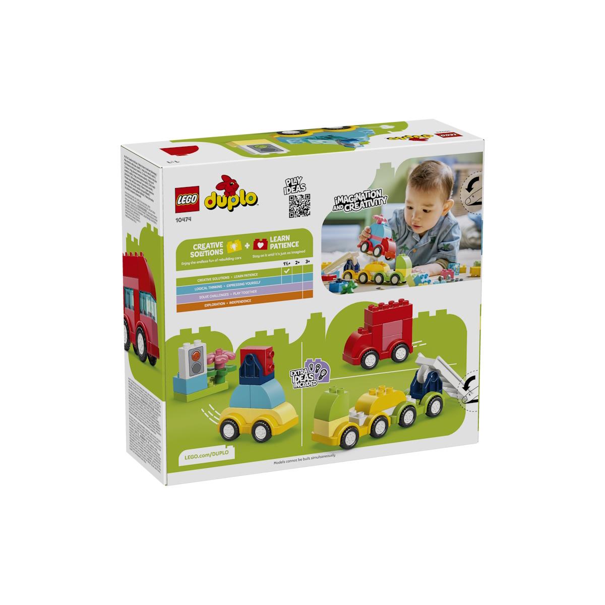 Dá asas à imaginação dos mais pequenos com o LEGO® DUPLO® My First Veículos Criativos, um conjunto de 42 peças recomendado para crianças a partir dos 18 meses, ideal para os primeiros passos na construção LEGO. As crianças podem construir um helicóptero com hélices rotativas, um camião basculante, um camião dos bombeiros com escada articulada e um carro familiar, explorando diferentes funções móveis. Depois, podem desmontar e recombinar as peças para criar novos veículos, como carros da polícia, camiões longos ou autocarros de dois andares, desenvolvendo a motricidade fina, a coordenação mão-olho e a criatividade. Com peças fáceis de manusear, este set é ideal para incentivar a exploração e a aprendizagem através da brincadeira. Perfeito para fãs de LEGO DUPLO® e veículos. Idade: +18 Meses O produto comercializado tem a marcação CE. Não funciona com pilhas e/ou baterias