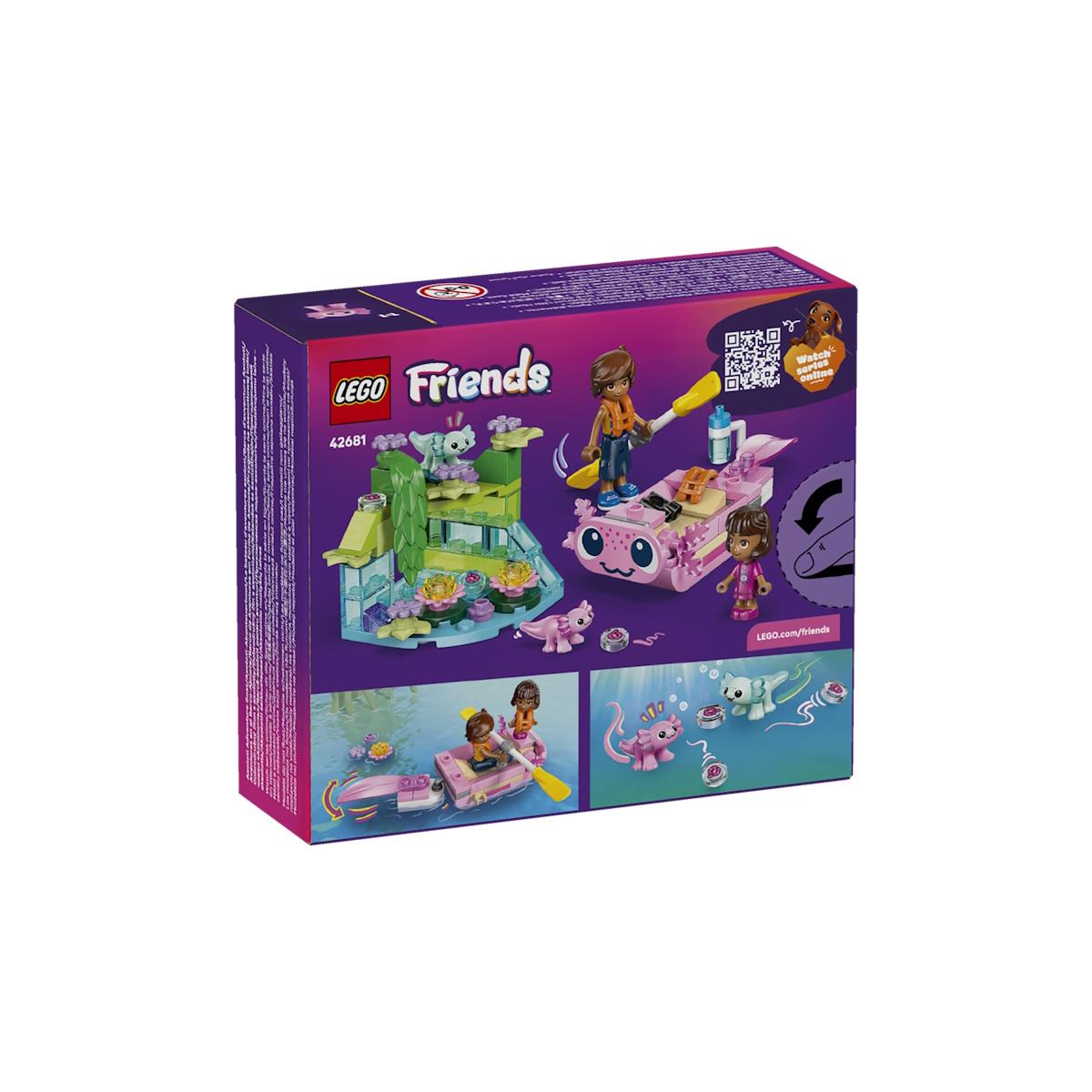 Parte para aventuras aquáticas cheias de ternura com o LEGO® Friends Barco de Aventuras em Forma de Axolote, um conjunto de 95 peças recomendado para crianças a partir dos 5 anos que incentiva o faz de conta e a imaginação. Este barco divertido apresenta um rosto amigável de axolote e uma cauda que abana, além de assentos, remos e dois coletes salva-vidas. O set inclui 1 miniboneco, 1 microboneca e 2 mini axolotes, bem como um modelo secundário com plantas, flores e água para recriar o habitat natural dos axolotes. As instruções digitais na app LEGO® Builder proporcionam uma experiência de construção interativa em 3D. Ideal para fãs de animais, aventuras e LEGO Friends. Idade: +5 Anos O produto comercializado tem a marcação CE. Não funciona com pilhas e/ou baterias Contém peças pequenas não recomendado a crianças menores de 3 anos Não adequado a crianças menores de 3 anos. AVISO: Contém peças pequenas. Perigo de asfixia.