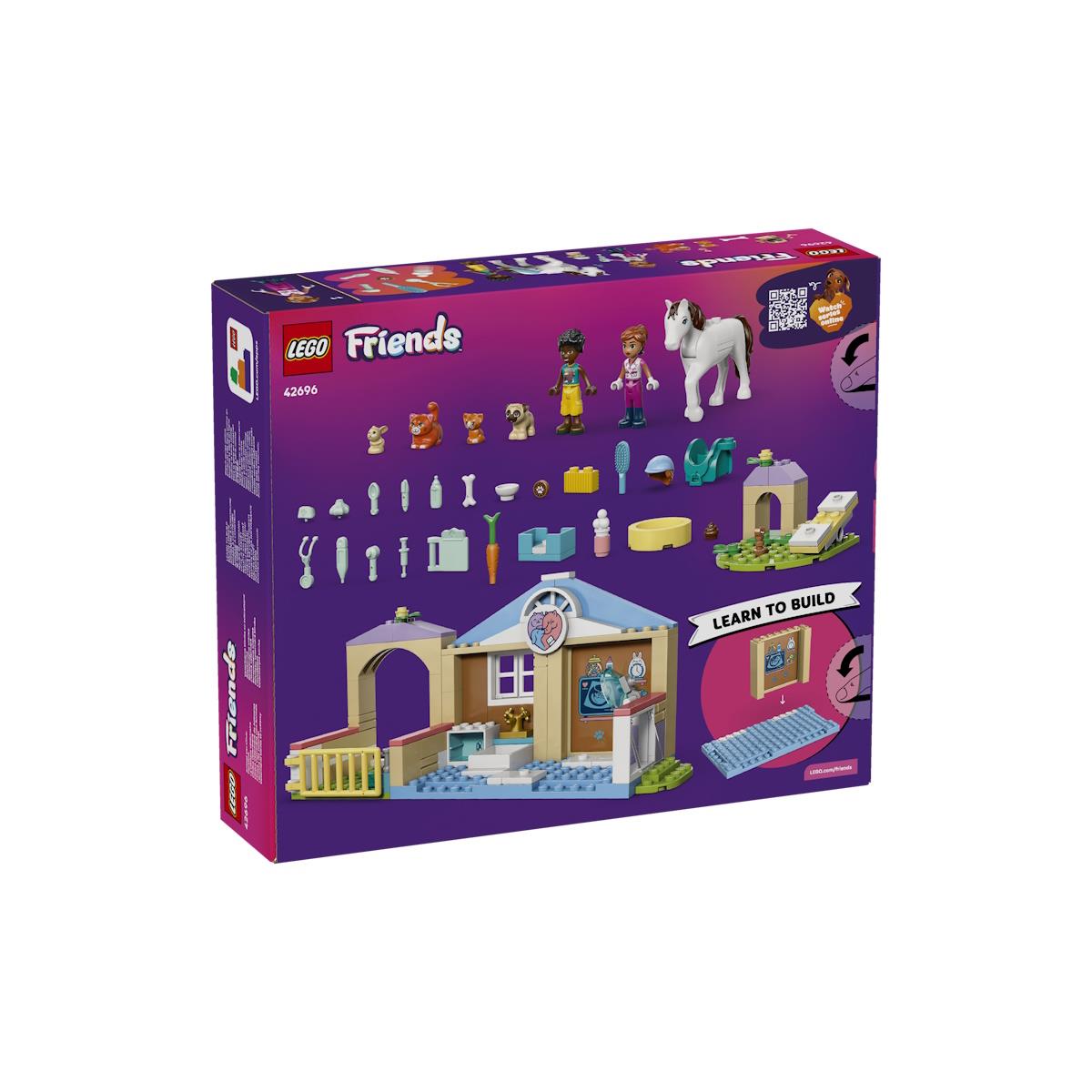 Cria histórias cheias de cuidado e ternura com o LEGO® Friends Clínica Veterinária com Animais, um conjunto de 141 peças recomendado para crianças a partir dos 4 anos, ideal para pequenos construtores. Esta clínica inclui estábulo, sala de exames, camas para animais, parque de brincadeiras e vários acessórios veterinários para encenar cuidados com os animais. O set inclui minibonecos do Leo e da Valeria, além de figuras de cavalo, cão, coelho e dois gatos, bem como acessórios como seringa, termómetro, sela, feno e escova. Concebido com elementos LEGO 4+ de início rápido, permite uma construção fácil e divertida. As instruções digitais na app LEGO® Builder oferecem uma experiência interativa em 3D. Ideal para fãs de animais, veterinária e LEGO Friends. Idade: +4 Anos O produto comercializado tem a marcação CE. Não funciona com pilhas e/ou baterias Contém peças pequenas não recomendado a crianças menores de 3 anos Não adequado a crianças menores de 3 anos. AVISO: Contém peças pequenas. Perigo de asfixia.