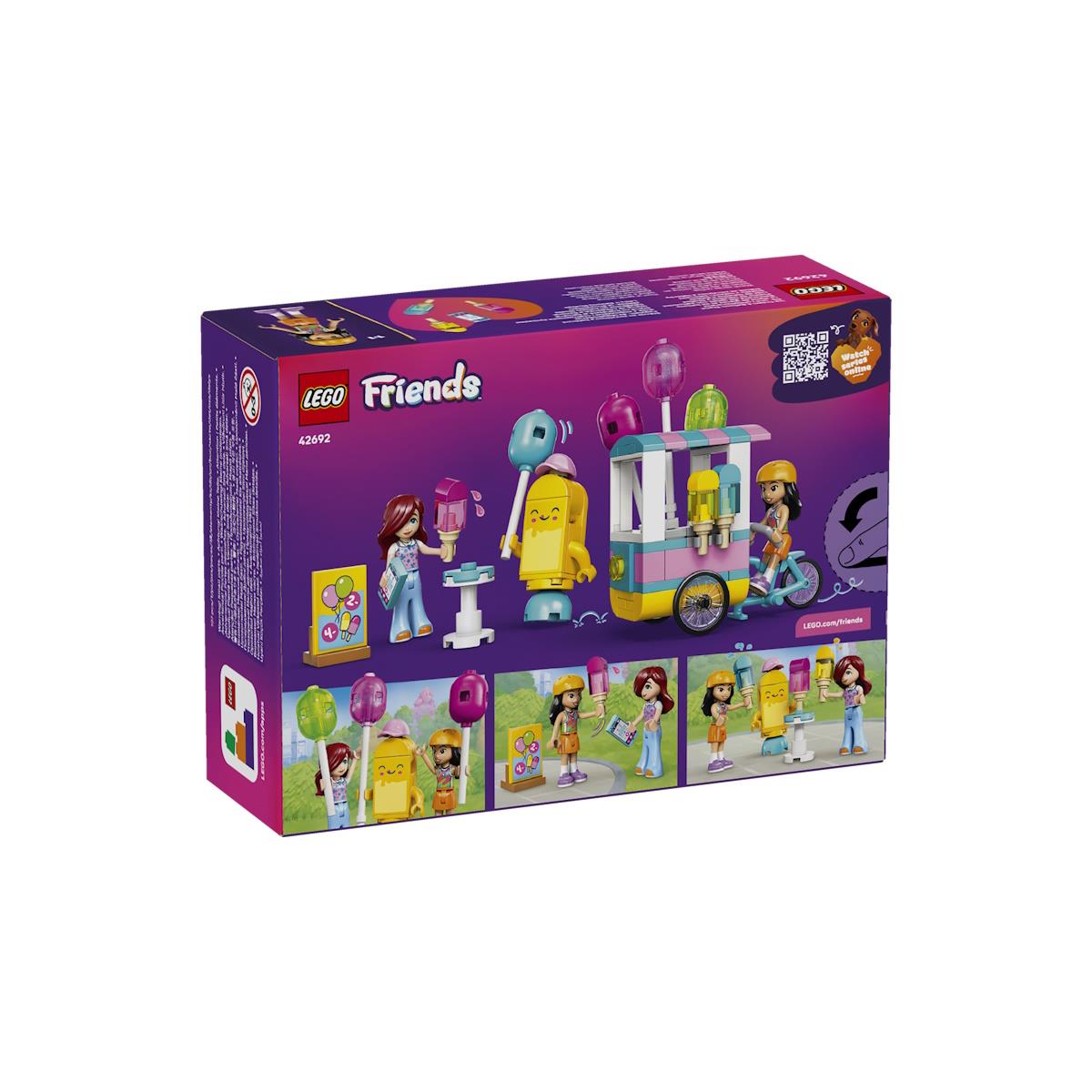 Cria histórias doces e cheias de cor com a LEGO® Friends Loja de Gelados e Balões, um conjunto de 107 peças recomendado para crianças a partir dos 6 anos que estimula o faz de conta e a criatividade. Esta loja divertida inclui gelados, balões, uma bicicleta para a venda ambulante, além de menu, caixa registadora, telefone e uma mesa para conviver. O set inclui minibonecas da Liann e da Paisley e uma mascote de gelado, ideais para encenar histórias de compras e amizade. As instruções digitais na app LEGO® Builder proporcionam uma experiência de construção interativa em 3D. Ideal para fãs de brincadeiras criativas e LEGO Friends.