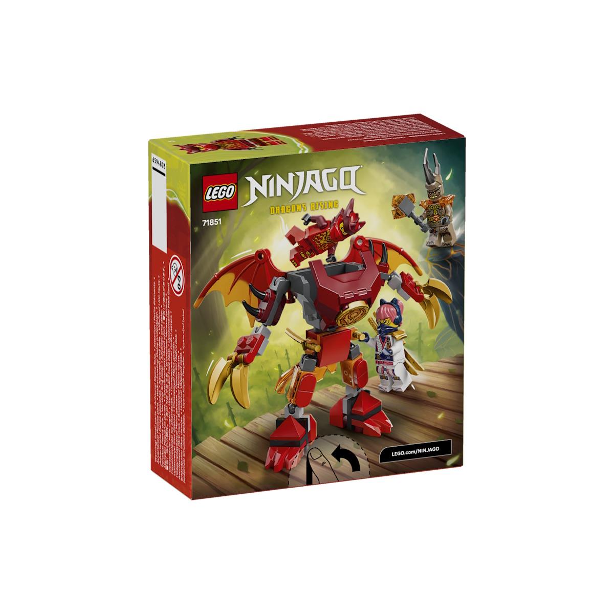 Entra em ação com o LEGO® NINJAGO® Pack de Batalha do Robô Dragão do Kai, um conjunto de 85 peças recomendado para pequenos aventureiros a partir dos 6 anos que combina construção criativa, encenação dinâmica e batalhas emocionantes. O robô dragão possui pernas ajustáveis, enormes asas, garras e um torso que roda a 360 graus, além de um cockpit para colocar uma minifigura, permitindo recriar cenas da temporada 4 de NINJAGO A Ascensão dos Dragões. O set inclui 3 minifiguras, Kai com duas espadas, Sora com duas espadas e o Monstro de Terra com garras, oferecendo horas de aventuras épicas enquanto os jovens ninjas enfrentam o mal na Floresta Sussurrante. Compatível com a app LEGO® Builder, permite acompanhar a construção com instruções digitais em 3D e explorar cada detalhe do robô de forma interativa. Ideal para crianças que gostam de construir, criar e salvar as Terras Fundidas com os seus heróis ninjas.