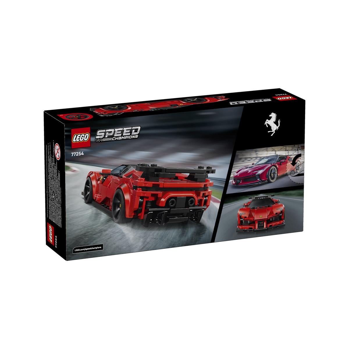 Descobre a potência e a tecnologia de ponta da Ferrari com o LEGO® Speed Champions Carro Desportivo Ferrari SF90 XX Stradale. Inspirado no carro de estrada legal mais poderoso alguma vez criado pela Ferrari, este modelo é perfeito para crianças a partir dos 9 anos que adoram velocidade, engenharia e design italiano. Esta réplica detalhada apresenta elementos autênticos do modelo real, como a cabine avançada, aileron traseiro, tubos de escape elevados e jantes decoradas com o icónico escudo da Ferrari. Para completar a experiência, o set inclui uma minifigura de piloto Ferrari, com fato oficial e capacete, pronta para ocupar o cockpit de um só lugar e entrar em ação. Ideal para construir, brincar, correr ou expor, este set LEGO Speed Champions é excelente para fãs de automóveis e da marca Ferrari. A construção é ainda mais intuitiva com a app LEGO Builder, que oferece instruções digitais interativas em 3D. Idade: +9 Anos O produto comercializado tem a marcação CE. Não funciona com pilhas e/ou baterias Contém peças pequenas não recomendado a crianças menores de 3 anos Não adequado a crianças menores de 3 anos. AVISO: Contém peças pequenas. Perigo de asfixia.