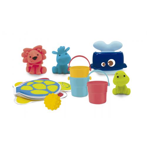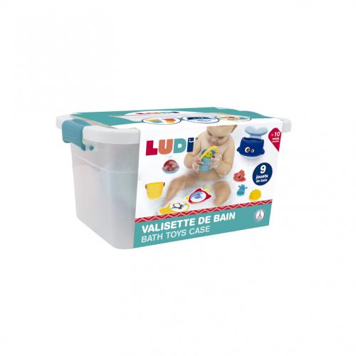 Desc. Técnica: Um kit completo para diversão à hora do banho! As malas de banho LUDI oferecem uma antologia de pequenos brinquedos aquáticos para inventar grandes aventuras. Encontre brinquedos leves e coloridos de todos os tipos: livro de banho, aspersores, copinhos, uma bola… Há algo para todos! Muito prática, a mala permite guardar tudo num instante. O seu material plástico resiste a pequenas quedas e garante uma higiene perfeita. A sua forma retangular permite guardar facilmente a caixa num canto da casa de banho. Graças à sua pega, pode levá-lo para onde quer que vá com muita facilidade. No mar ou na piscina, os pequenos brinquedos aquáticos segui-lo-ão para todo o lado! Adequado para crianças a partir dos 10 meses. Dimensões da mala: 27 x 12,5 x 18,5 cm. Seque os brinquedos após o uso e enxague/lave com água limpa regularmente.