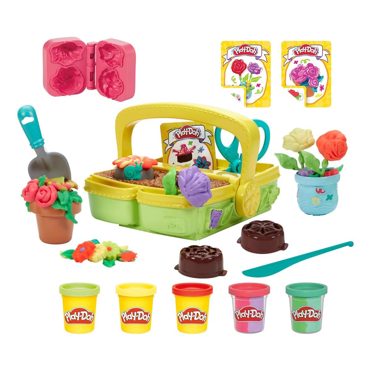O brinquedo Jardim Mágico da Play-Doh permite a imaginação florir! Este brinquedo de jardinagem dentro de casa está preparado para todas as estações, com formas divertidas para as crianças brincarem aos floristas. a caixa de jardinagem e os discos de flores criam 4 formas diferentes de flores de Play-Doh e o molde-livro cria mais 2 variedades. O canteiro e o vaso permitem encaixar os caules e expor as flores. 5 potes de Play-Doh e 3 cartas com instruções ajudam a despertar a imaginação das crianças com este brinquedo sensorial.