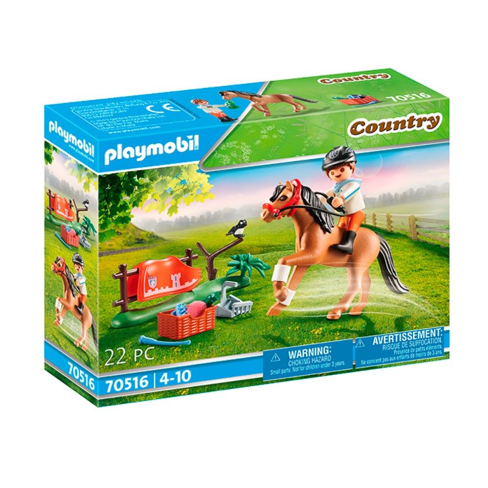 Divirta-se colecionando o Pônei Connemara Colecionável. Todos os dias, o menino visita seu pônei e verifica se está tudo bem. Para os cuidados adequados, ele guardou todos os utensílios na caixa vermelha e preparou a manta para o cavalo. Os excrementos, é claro, são removidos com pá e vassoura. O conjunto contém uma figura de menino, um pônei Connemara, uma manta para o cavalo, uma caixa vermelha com acessórios de cuidados e outros itens extras.