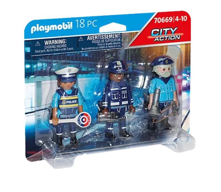 Marca: Playmobilcolor: Características multicolor: Ação para os fãs policiais: Playmobil Police Figuras definido com 2 policiais, 1 mulher da polícia e acessórios para uma recreação detalhada de uma operação. Capacete e manga destacável com pistolas removíveis, mulher com bolo destacável, equipamento como megafone, paleta, equipamento de rádio e muito mais.