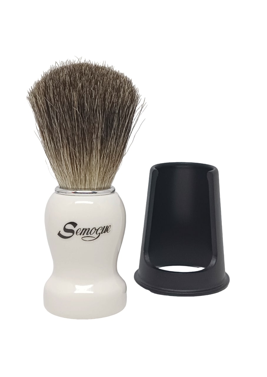 Filamento Tipo: Pêlo de Texugo Qualidade: Texugo Pure Grey Nó Formato: Fan Diâmetro: 21mm Altura: 52mm Anel: Cromado Punho Nome: Pharos Material: Resina Cor: Branco Ártico Acabamento: Brilhante