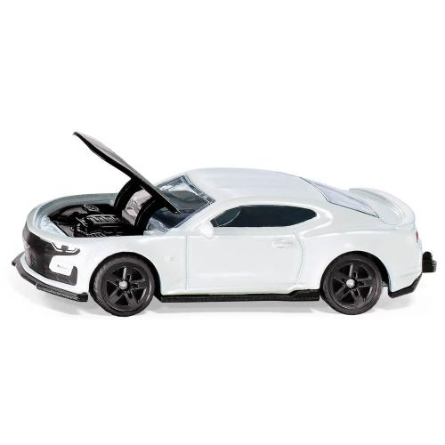 Desc. Técnica: Muscle car com potência V8 – A sexta geração do Chevrolet Camaro também carrega os genes de um típico muscle car. Especialmente quando o condutor mostra a potência do motor V8. Também quando está parado: basta abrir o capô para ver o motor detalhadamente representado. Assim, o Camaro junta-se aos outros muscle cars da siku: Dodge Challenger, Chevrolet Corvette, Ford Mustang. Naturalmente, a última geração é ainda mais rápida e manobrável do que as suas antecessoras e oferece aderência suficiente com os pneus emborrachados. Mas o Chevrolet Camaro também pode ser diferente: com o engate de reboque, torna-se um veículo de reboque para um barco ou uma mota.