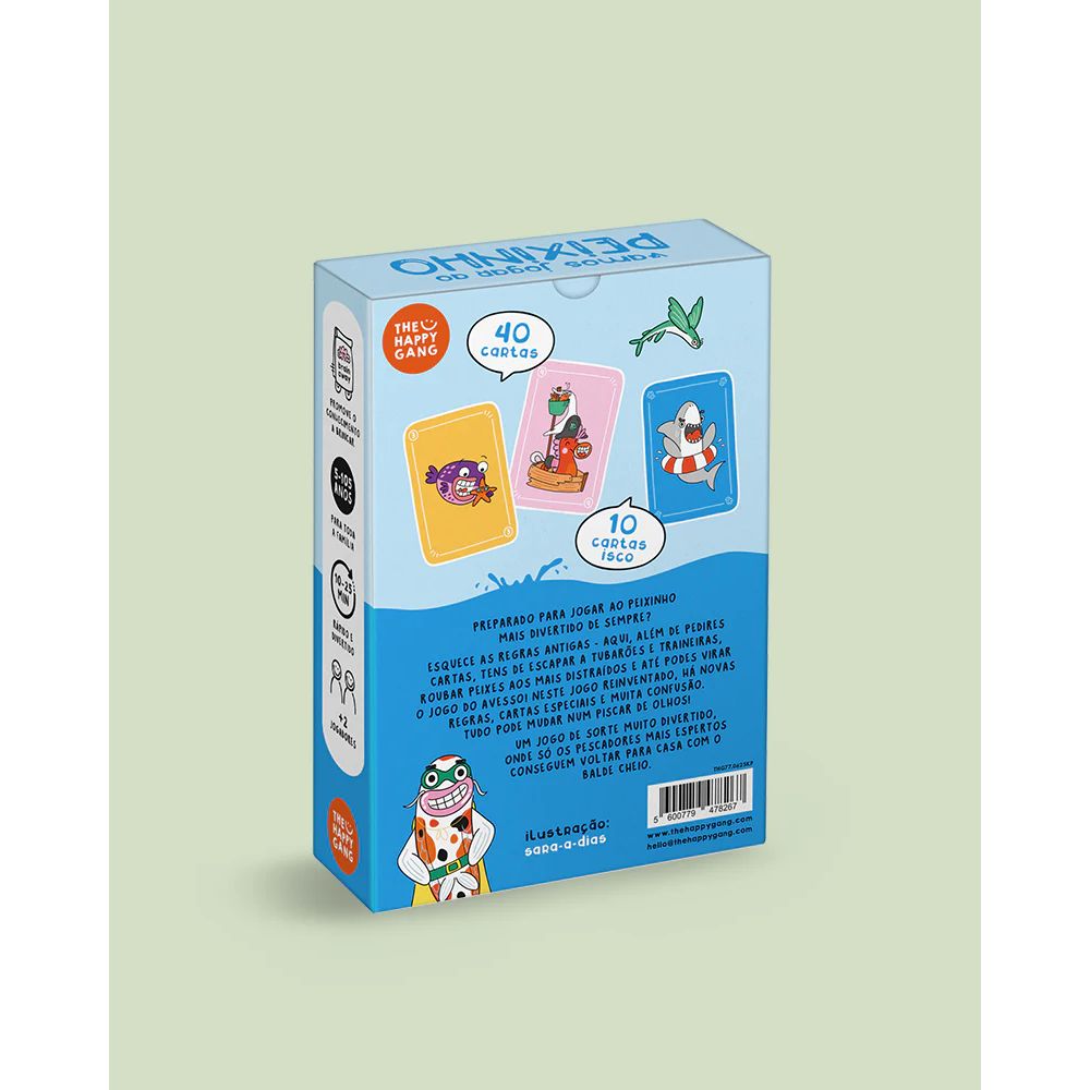 Preparado para jogar ao peixinho mais divertido de sempre? Esquece as regras antigas – aqui, além de pedires cartas, tens de escapar a tubarões e traineiras, roubar peixes aos mais distraídos e até podes virar o jogo do avesso! Neste jogo reinventado, há novas regras, cartas especiais e muita confusão. Tudo pode mudar num piscar de olhos! Um jogo de sorte muito divertido, onde só os pescadores mais espertos conseguem voltar para casa com o balde cheio. Para Quê? Imaginação Criatividade Pensamento Lógico Pensamento Crítico Competências Sociais Competências Individuais Linguagem Matemática Screen-free Detalhes do produto Gama: Brain Away; Idade: +5 Anos; Nr. de Jogadores: +2 Jogadores; Material: Papel e Cartolina; Medidas: 17,5x4x12 cm O produto comercializado tem a marcação CE. Não funciona com pilhas e/ou baterias Contém peças pequenas não recomendado a crianças menores de 3 anos