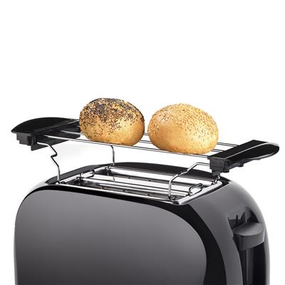 Torradeira simples com 2 entradas para duas fatias de pão por utilização. Equipada com função pop-up, autocentrar, cancelar, tabuleiro removível para migalhas e termóstato com 6 posições. Tamanho superfície de cozedura(cm) 13,5 x 3,3 x 12 Potência(W) 800