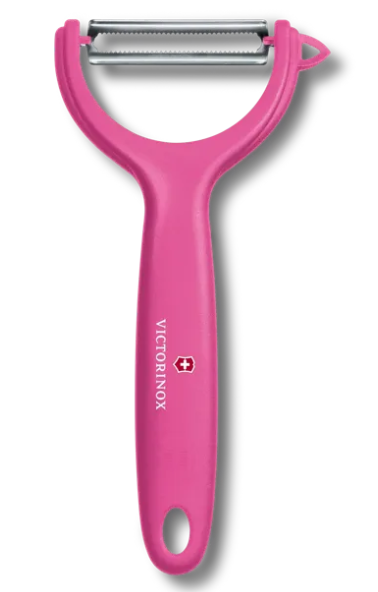Cozinhar é uma arte na qual você desenha com o sabor e enfeita com as cores. Como o mestre de sua cozinha, você merece as ferramentas certas para expressar sua criatividade. É neste ponto que o descascador de tomates e kiwis da Victorinox é o companheiro ideal. Sua lâmina serrilhada está pronta para enfrentar as cascas mais duras, enquanto o cabo ergonômico facilita muito o ato divertido de cozinhar. Dimensões Altura: 22 mm Comprimento: 175 mm Largura: 76 mm Peso: 25 g Detalhes Número do artigo: 7.6079.5 Forjada: Não Tipo de lâmina: Lâmina serrilhada, lâmina dupla Material: Polipropileno (PP) Cor: Rosa Outras informações Lavável em máquina: Sim